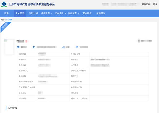 点击个人信息菜单,可查看个人信息,如下图所示