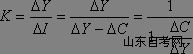 如果以DY代表增加的收入量,以DI代表增加的投资量,以K代表乘数则K=DY/DI ,由于DY=DI+DC,则I=DY-DC 。