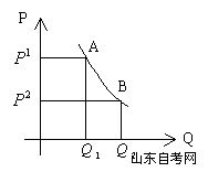 假定消费者对某种商品的需求曲线上的两个点分别为A和B,其价格与购买量的组合分别为(P1Q1)和(P2Q2)如图所示,于是DP和DQ马上可求得,但是在考虑价格和需求量变动的百分比时,是选取P1,Q1,还是P2,Q2其结果不一样。为解决这一问题经济学家采用了一个变通但却非常有效的方案,即取AB之中点作为代表,这样