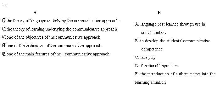 Directions: This section consists of three groups of pairs listed in two columns, A and B. You are to match the one marked ①, ②, ③, ④, or ⑤ in Column A with the one marked A, B, C, D, or E in Column B. One point is given to each pair you match correctly.